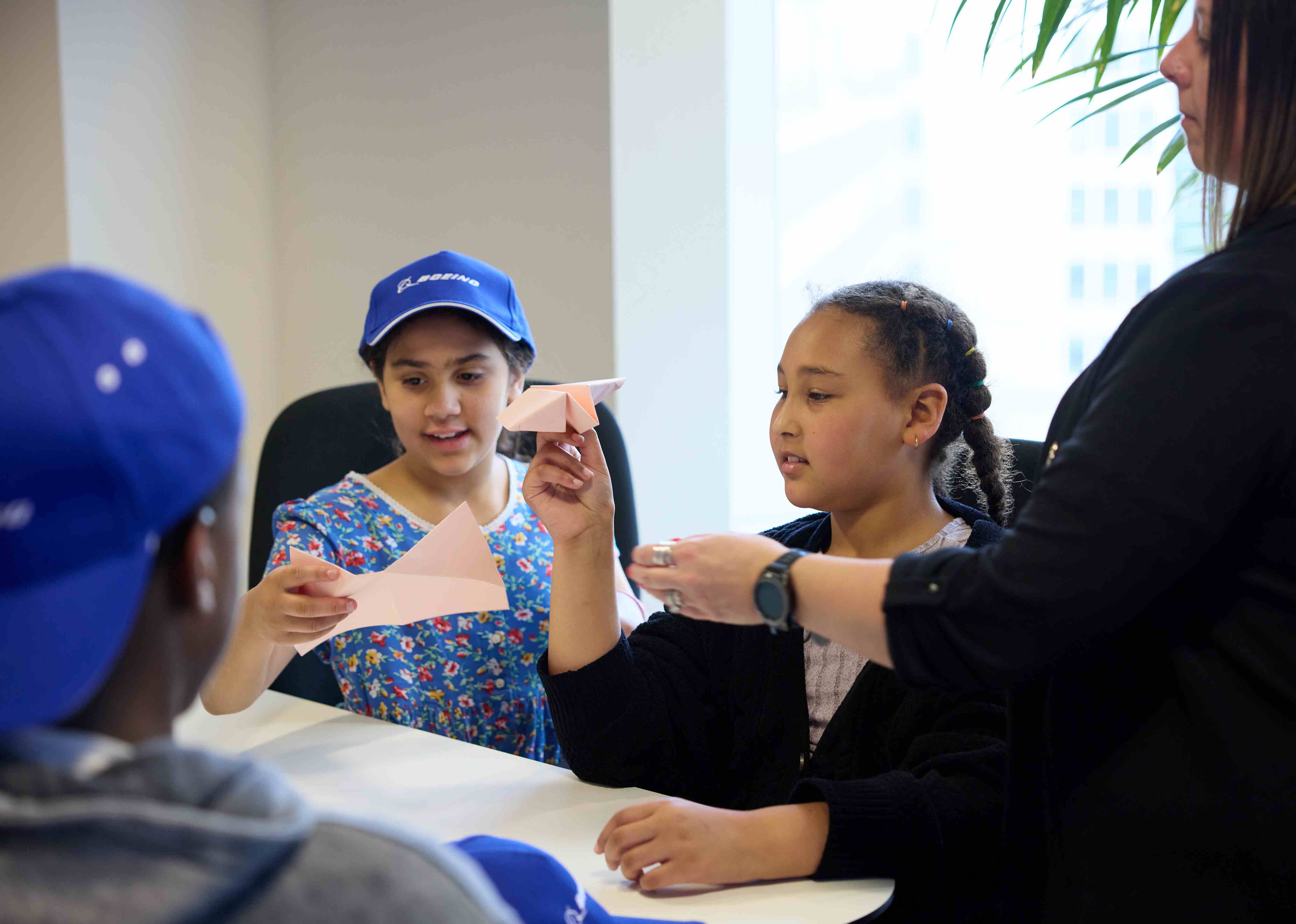 We are grateful to Boeing, for offering this unique opportunity for young people to visit one of our business neighbors and valued corporate partner. One girl commented that she ‘walks past this building every day and I’ve always wanted to go inside’ – demonstrating the importance of giving local children the chance to visit and learn about new industries. Thank you Boeing you may just have inspired the next generation of pilots or engineers!