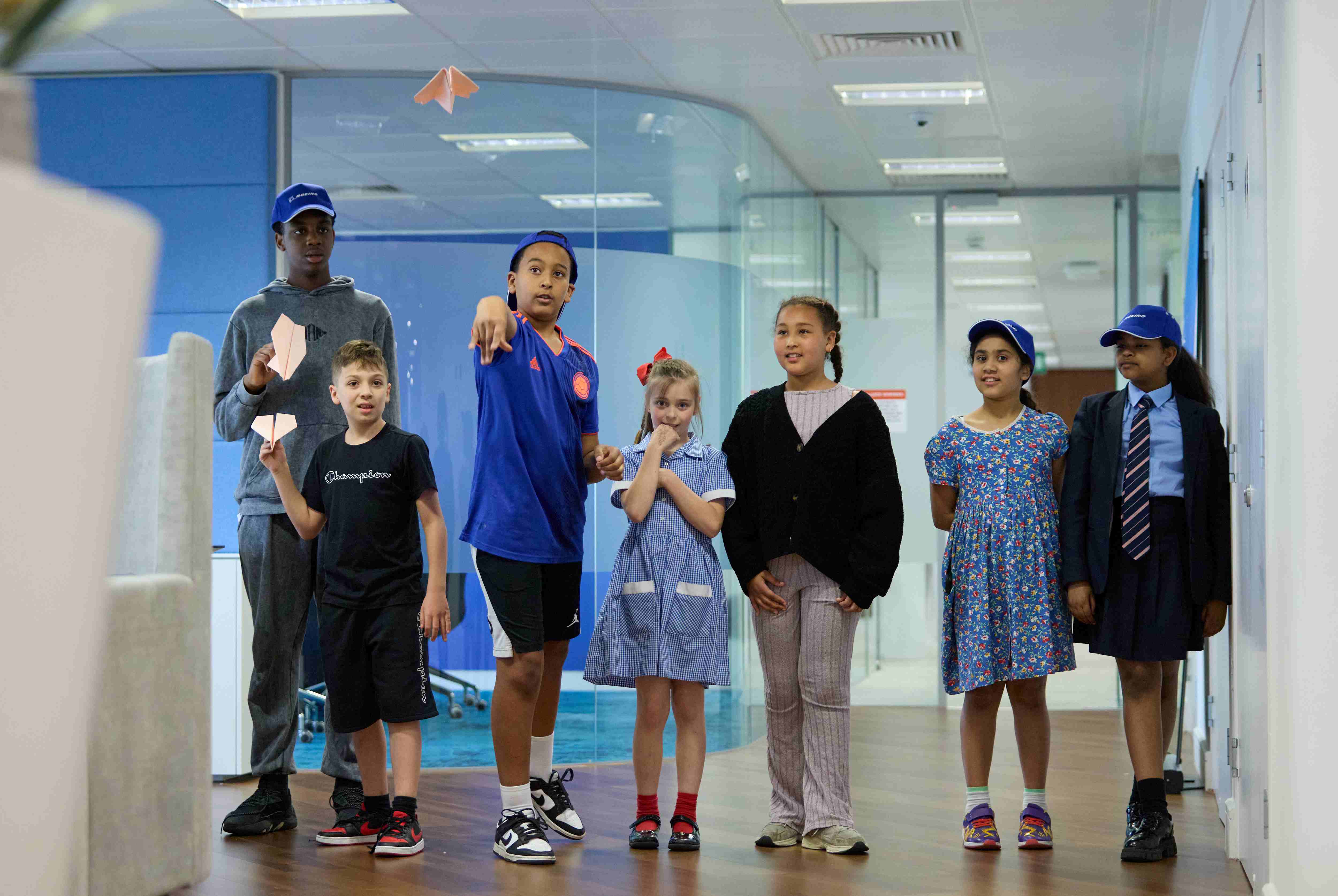 Next, the young people’s design skills and ingenuity were put to the test, as they were challenged to design their own paper plane. They excitedly got to work, with many adapting the guide design for improved aerodynamics! Then it was time to see whose plane would go the distance, as they tested their planes in the large reception space.